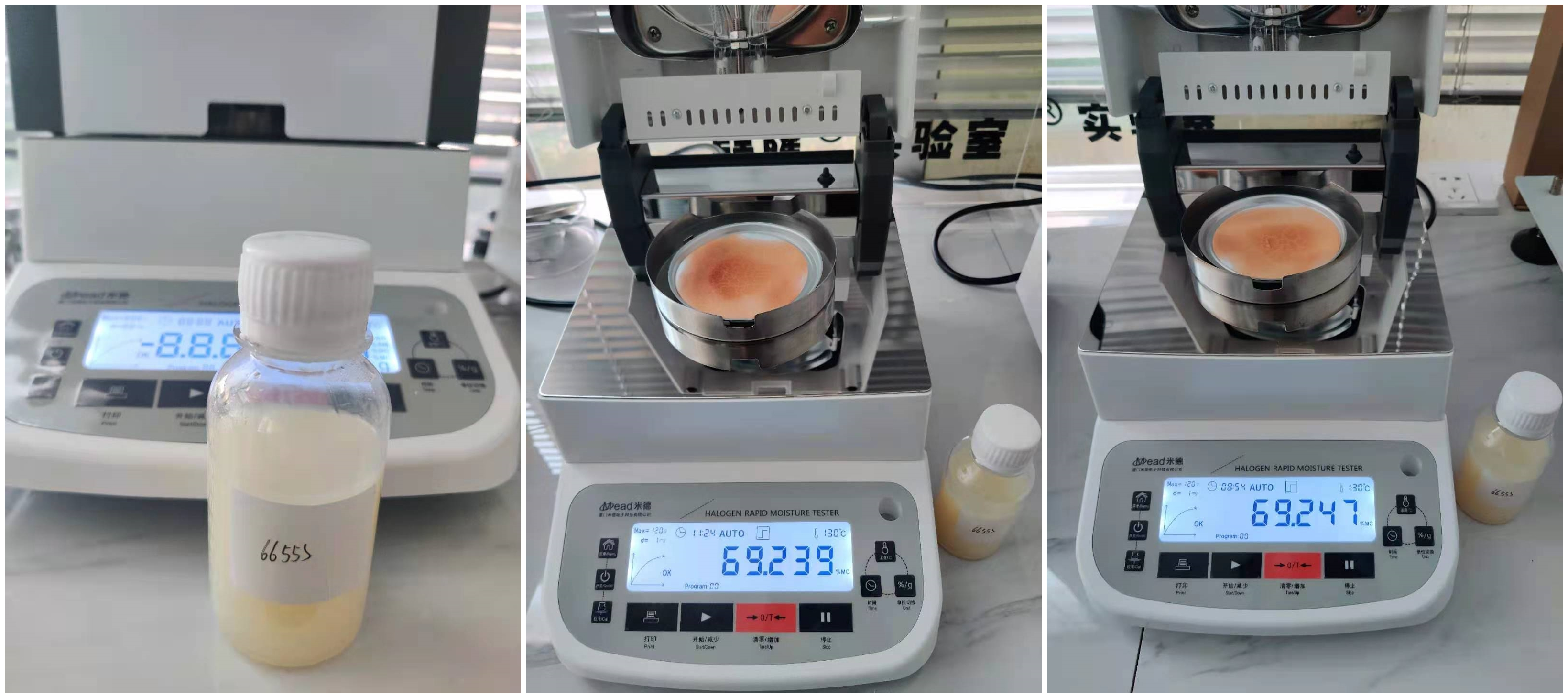 4.10、將裝有樣品的樣品瓶放入加熱孔中,插入空芯針,在水分測定儀上輸入樣品重量,調(diào)整延時時間,同時水分儀上開始測量。在屏幕上點(diǎn)方法,并且在方法中輸入樣品稱重質(zhì)量,等待測量完成顯示最終含水量結(jié)果。