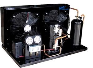 | 冷凝器 | 風(fēng)冷式鱗片式冷凝器,冷卻風(fēng)機(jī)散熱 | 不銹鋼釬焊板式換熱器 | |||