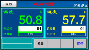 2.可顯示執(zhí)行程序號(hào)碼,段次,剩余時(shí)間及循環(huán)次數(shù), 運(yùn)轉(zhuǎn)時(shí)間顯示 3.程序編輯以及圖形曲線顯示 4.具單獨(dú)程序編輯畫面,每頁可輸入4個(gè)段次溫濕度,時(shí)間 5.定點(diǎn)或程序動(dòng)作狀態(tài)顯示 6.語言轉(zhuǎn)換可以切換中文/英文 7.7寸真彩顯示屏幕 |