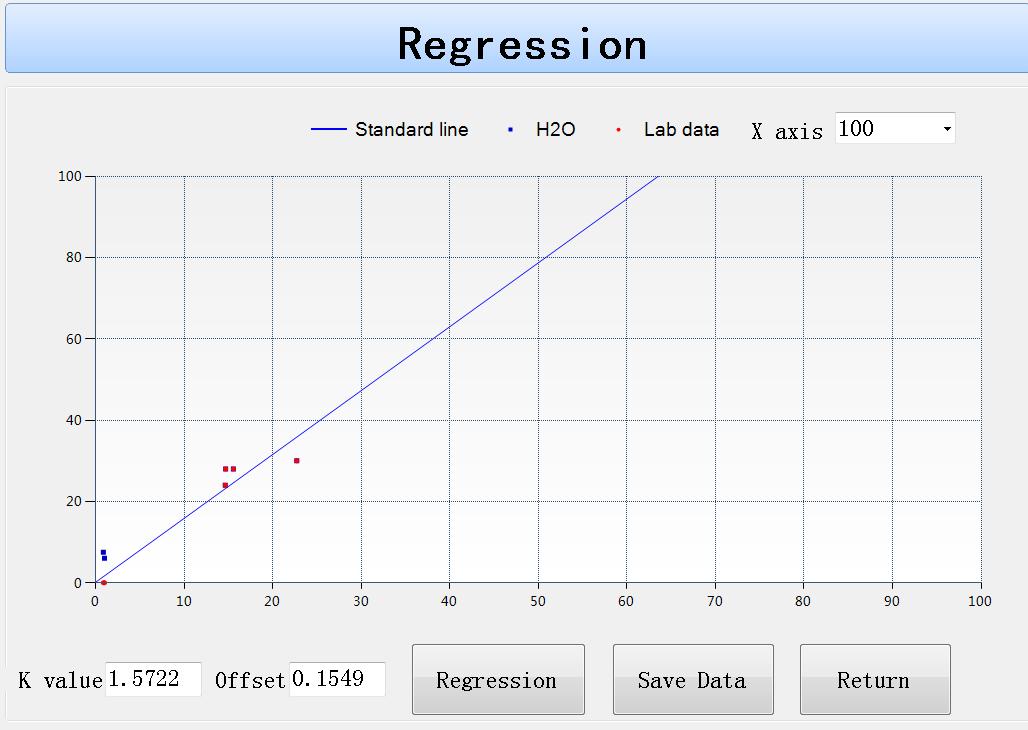 藍色的點為:未標定前的水分值