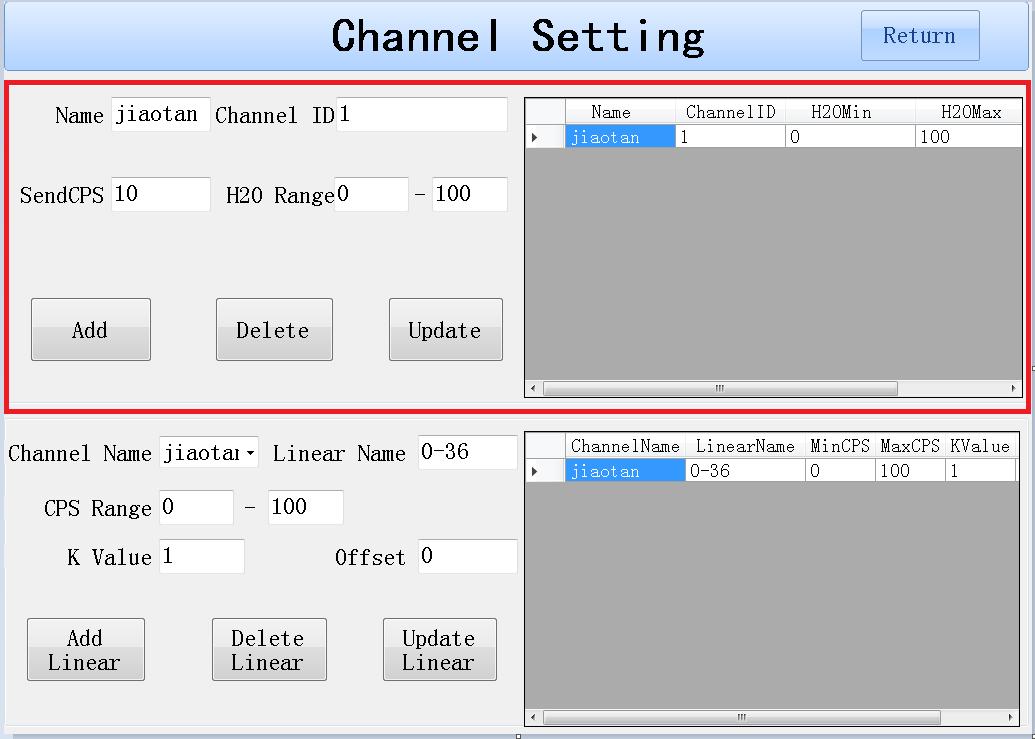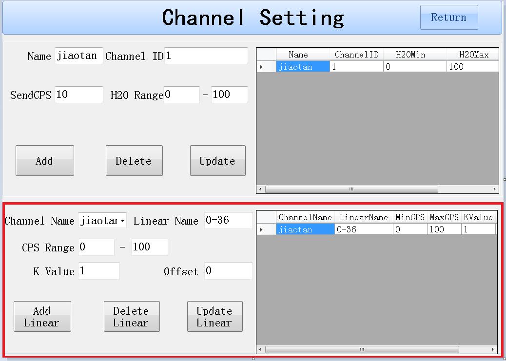 注意:每一個通道可以創建多個線性模型。但是CPS Range區間不能交叉,如果發生了交叉,則以最后一個線性模型獲取的數據為準。只有創建線性后,再能在取樣界面選中對應的線性進行取樣。