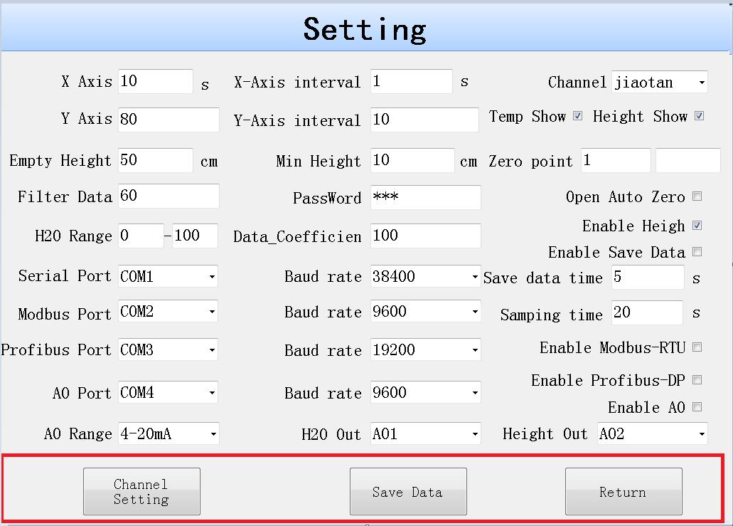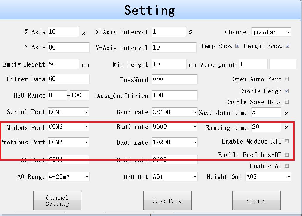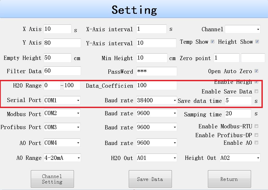 注意:水分輸出和高度輸出不能配置同一通道。