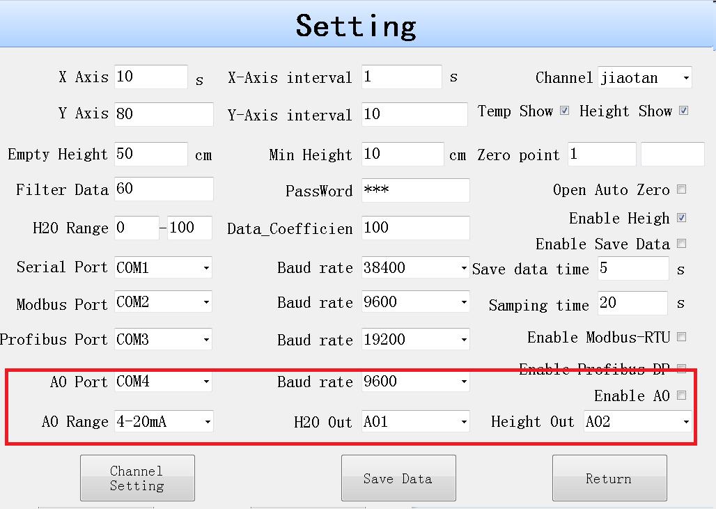 AO Port:與模擬量模塊通訊串口號,默認COM4.