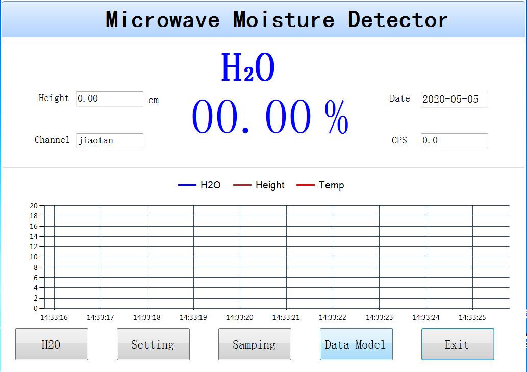 此界面主要顯示四個數據值:水分、物料高度、檢測通道和能量值