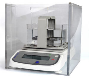 ②將樣品完全浸入水中,測水中重量,按M鍵記憶,直接顯示密度值。